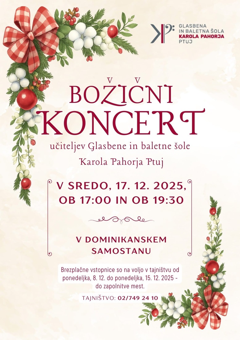 Vabljeni na čaroben božični koncert učiteljev Glasbene in baletne šole Karola Pahorja Ptuj. 🎶