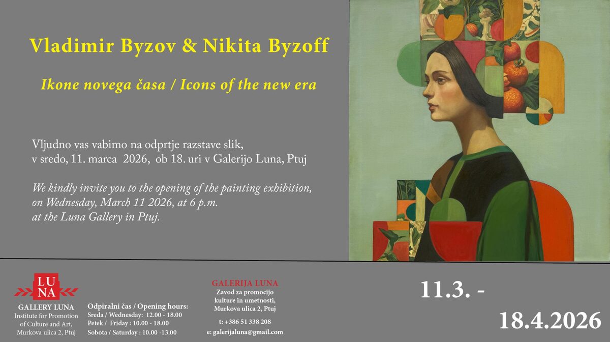 Vljudno vas vabimo na otvoritev razstave dveh ukrajinskih slikarjev, očeta in sina, Vladimirja Byzova in Nikite Byzoffa, v Galerijo Luna na Ptuju, v sredo, 11. marca 2026, ob 18. uri.