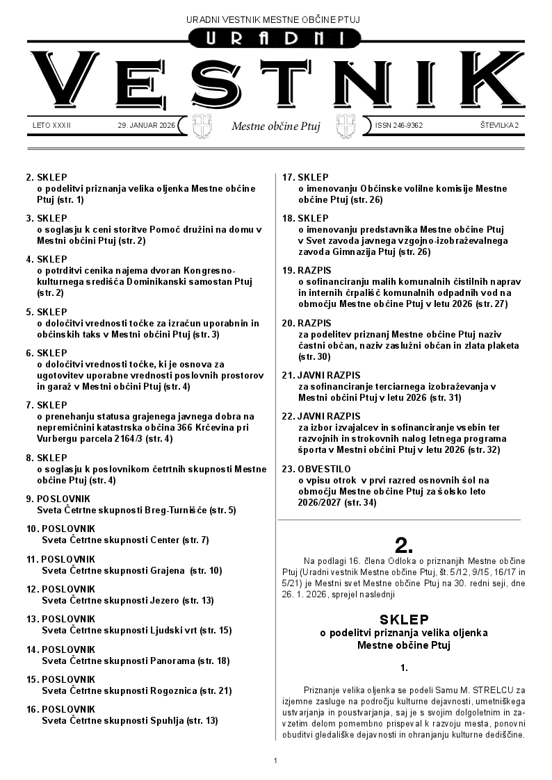 URADNI VESTNIK MESTNE OBČINE PTUJ, ŠT. 2/2026