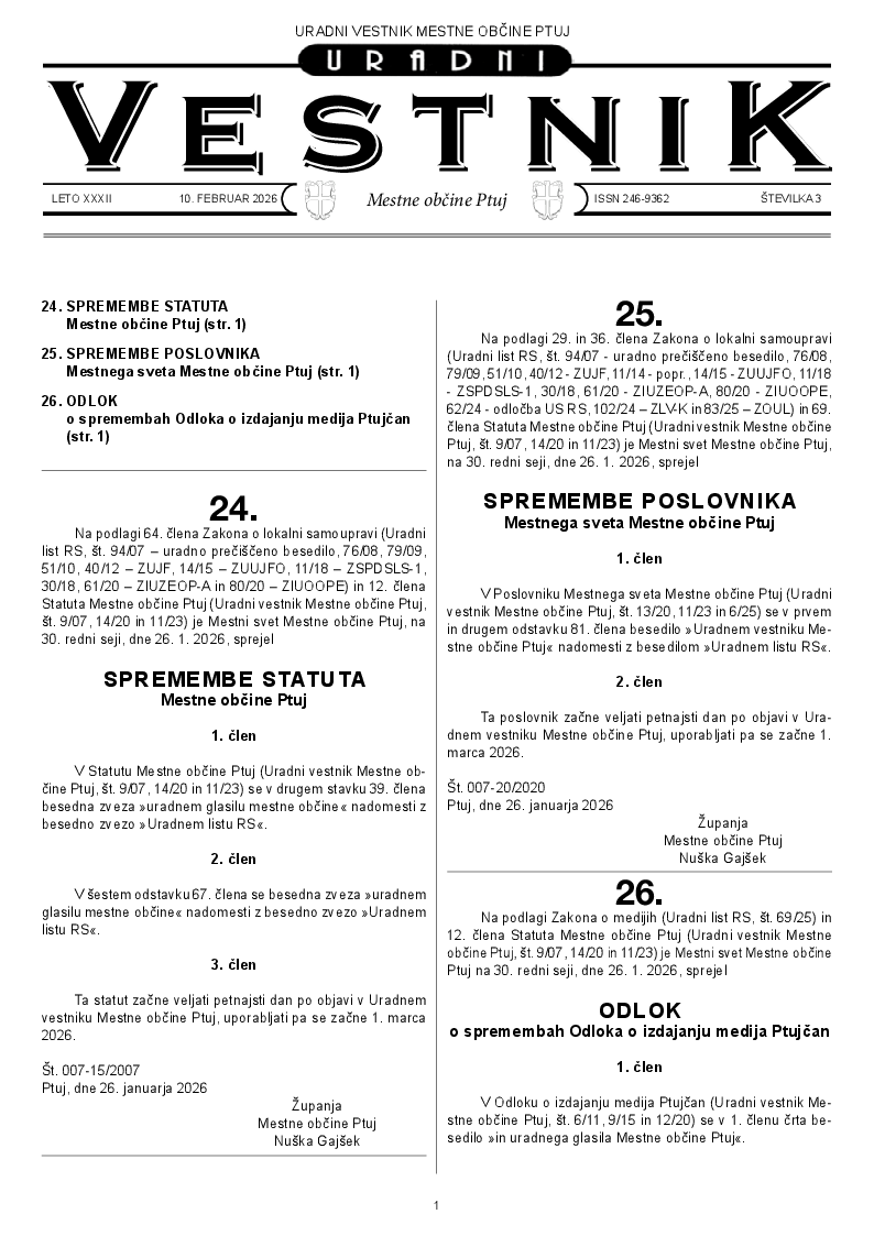 URADNI VESTNIK MESTNE OBČINE PTUJ, ŠT. 3/2026