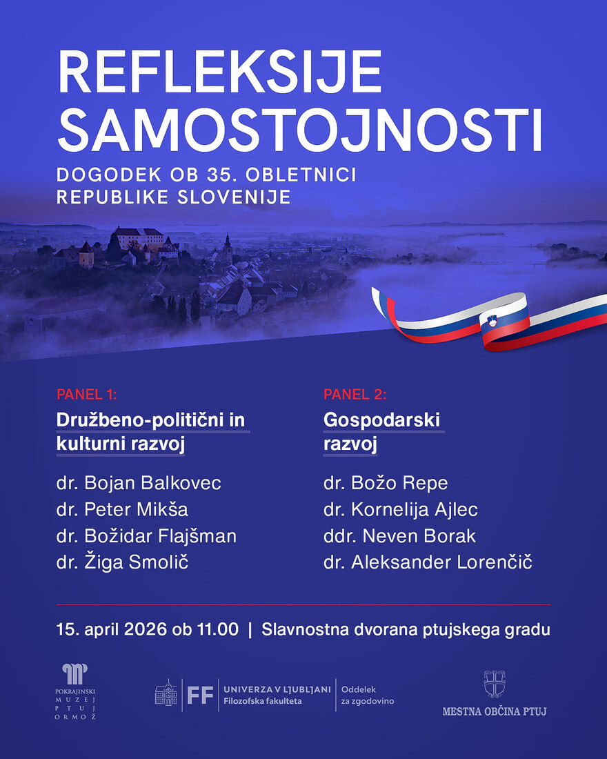Pokrajinski muzej Ptuj - Ormož in Oddelek za zgodovino Filozofske fakultete v Ljubljani vabita na dogodek ob 35-letnici samostojnosti Republike Slovenije. V 2 panelih bodo priznani strokovnjaki analizirali pot, ki smo jo prehodili, razpravljali o ključnih izzivih in skušali odgovoriti na vprašanje, kje danes Slovenija kot država je. Dogodek bo skozi preplet različnih vidikov zasnovan kot celovit pregled razvoja države.