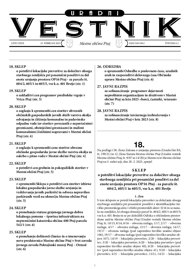URADNI VESTNIK MESTNE OBČINE PTUJ, ŠT. 2/2023