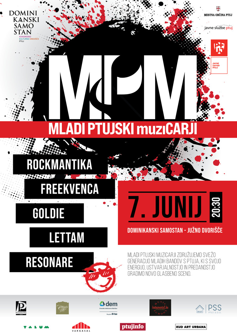 Mladi ptujski muziCarji združujemo svežo generacijo mladih bendov s Ptuja, ki s svojo energijo, ustvarjalnostjo in predanostjo gradimo novo glasbeno sceno. Verjamemo, da mlad Ptuj igra. Glasno, iskreno in z dušo.
