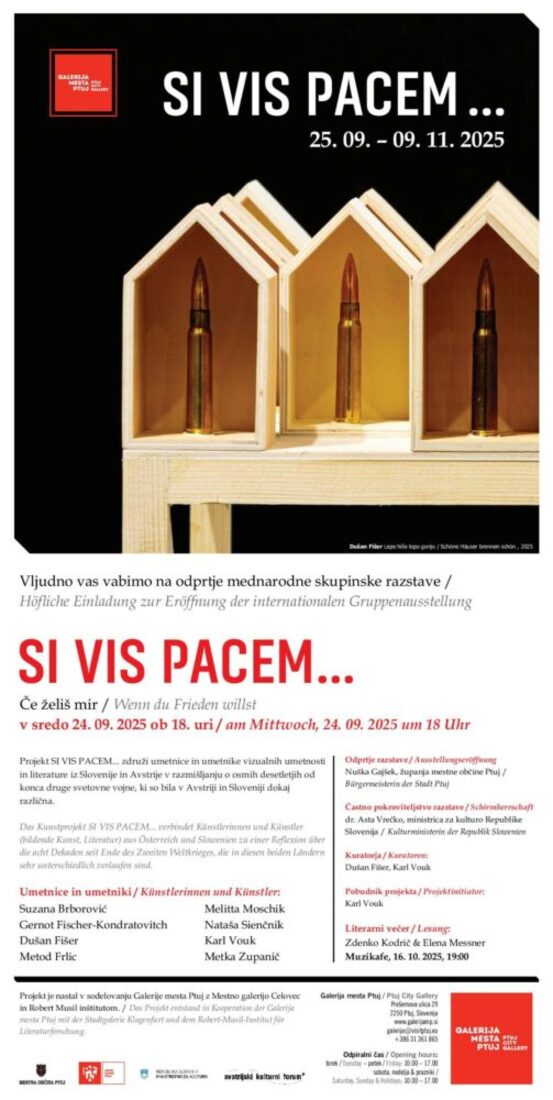Projekt Si vis pacem je zdužil umetnice in umetnike vizualnih umetnosti in literature iz Slovenije in Avstrije v razmišljanju o osmih desetletjih po koncu druge svetovne vojne, ki so bila v Avstriji in Sloveniji dokaj različna. Projekt je nastal v sodelovanju Galerije mesta Ptuj z Mestno galerijo Celovec in Robert Musil inštitutom.