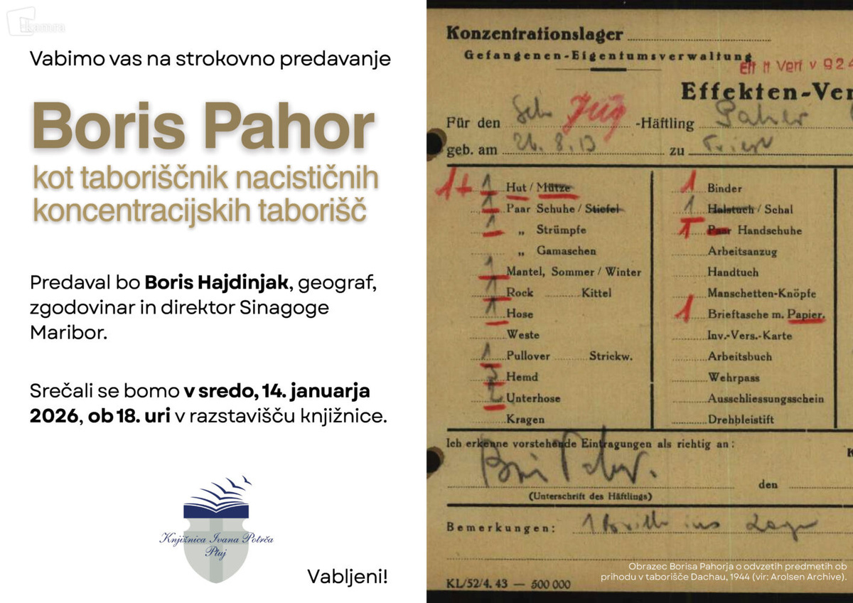 Vabimo vas na strokovno predavanje Boris Pahor kot taboriščnik nacističnih koncentracijskih taborišč.
