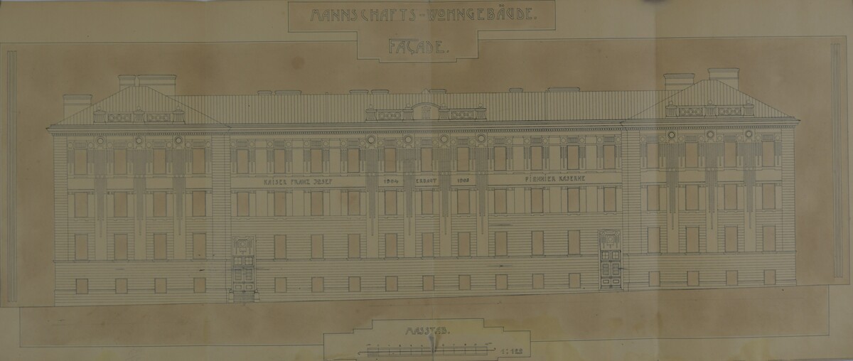 (Foto: Načrt fasade vojašnice na Vičavi iz leta 1904)