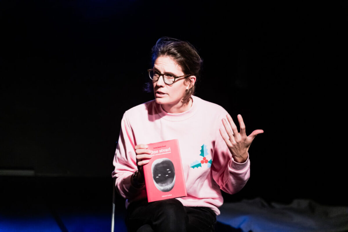 »Naslov predstave je »this is my truth tell me yours«, kar je pravzaprav citat citata, toda predstava nima nobene zveze s tistimi izvirnimi citati, ampak gre bolj za neke moje resnice. Ker sicer delam kot pisateljica in dramaturginja, to počnem že skoraj 15 let, ampak, iskreno, pred kratkim sem začela razmišljati, da bi se rada začela ukvarjati s čim drugim. Ker se mi zdi umetnost zelo zjebana in ker me je umetnost zelo zjebala. Potem pa sem naredila to predstavo, prav o tem, kako me je umetnost zjebala, in dejansko ugotovila, da je med mano in umetnostjo bolj love-hate odnos. In ta umetnost je zame še vedno pogosto dovolj ok. (Čeprav me še vedno pogosto moti.) Še druge teme, ki jih obravnavam v predstavi, so ženski orgazem, moško samozadovoljevanje, umetniška odgovornost in zvonjenje v ušesih. Omenim še Konstrakto, Jana Fabra, Oliverja Frljića, Xanax, SPID in Jezusa. V bistvu bi bila vesela, če prideš na predstavo.«