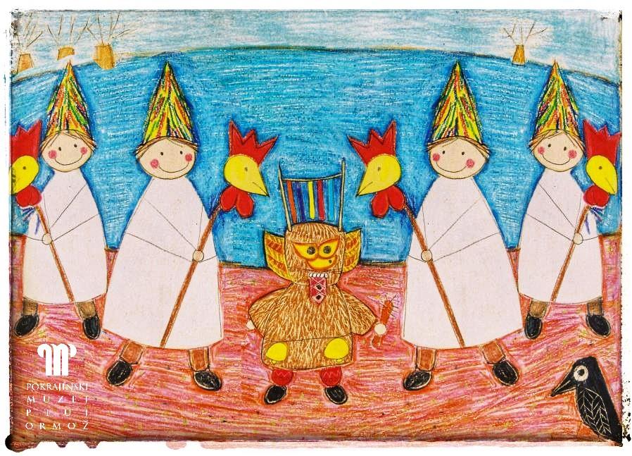 Ogled razstave za otroke Ptujske maske rajamo, v goste vam prihajamo, barvanje papirnate kurentove lutke, sestavljanje unikatnih lesenih sestavljank s podobami tradicionalnih pustnih likov,