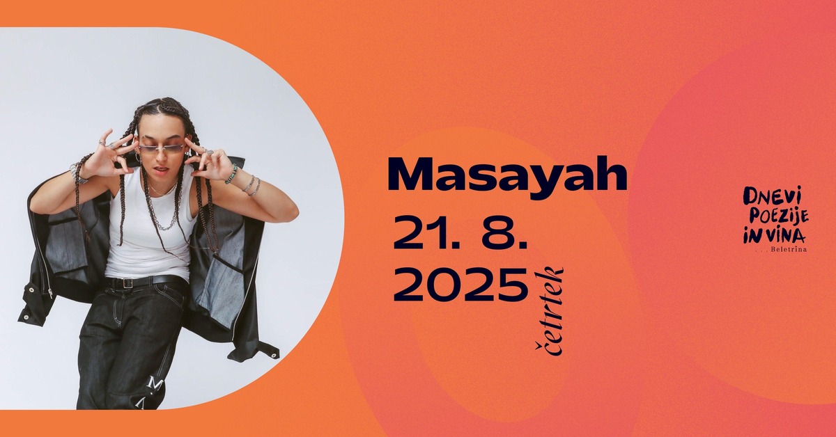 Masayah, raperka, r’n’b-pevka, kitaristka in avtorica, je s prvencem Zavedno (2023) osvojila dve zlati piščali za album in skladbo leta 2024. S pesmijo “Ni panike” se je uveljavila kot eden najpomembnejših glasov slovenske glasbene scene. Leta 2023 je razprodala Kino Šiška, leta 2024 pa napolnila Cvetličarno in nastopila na festivalu EXIT. Masayah ne sledi trendom – njena besedila so surova in avtentična.