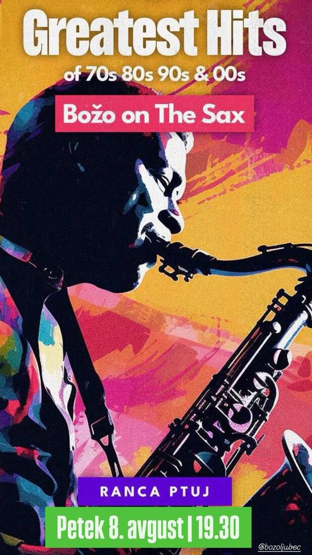 Petkov poletni večer, sončni zahod na Ptujskem morju in zvok saksofona. Božo Ljubec bo preigraval največje hite 70., 80. in 90. let.