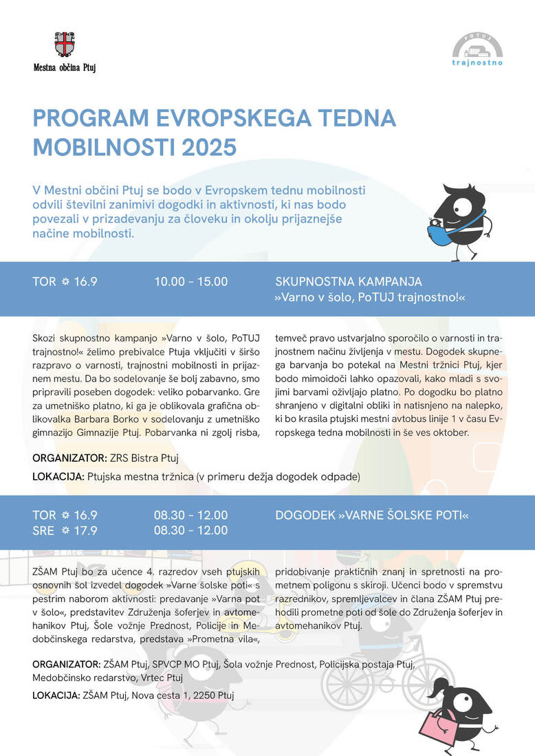 V Mestni občini Ptuj, ki se pridružuje že sedemnajstič, se bodo v Evropskem tednu mobilnosti odvili številni zanimivi dogodki in aktivnosti, ki nas bodo povezali v prizadevanju za človeku in okolju prijaznejše načine mobilnosti. 🚲🚶♂️🚌