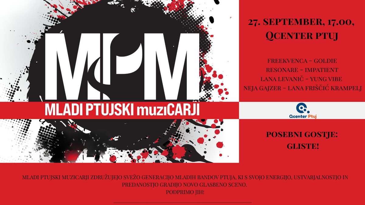 MLADI PTUJSKI MUZICARJI ZDRUŽUJEJO SVEŽO GENERACIJO MLADIH BANDOV PTUJA, KI S SVOJO ENERGIJO, USTVARJALNOSTJO IN PREDANOSTJO GRADIJO NOVO GLASBENO SCENO. PODPRIMO JIH!