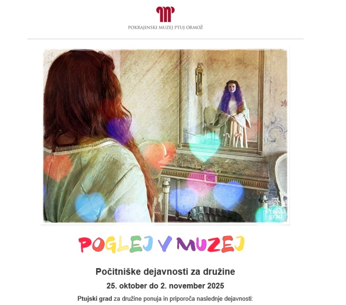 pridružite na brezplačnem družinskem vodstvu. Obvezna je najava na ptujski.grad@pmpo.si!
