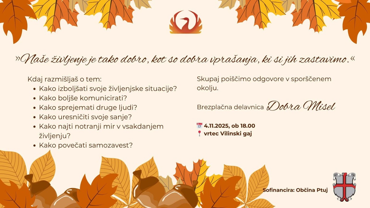 Društvo Feniks vabi na delavnico osebnostne rasti, kjer bomo skupaj raziskovali, kako v vsakdan vnesti več miru, pozitivne energije in notranje moči.