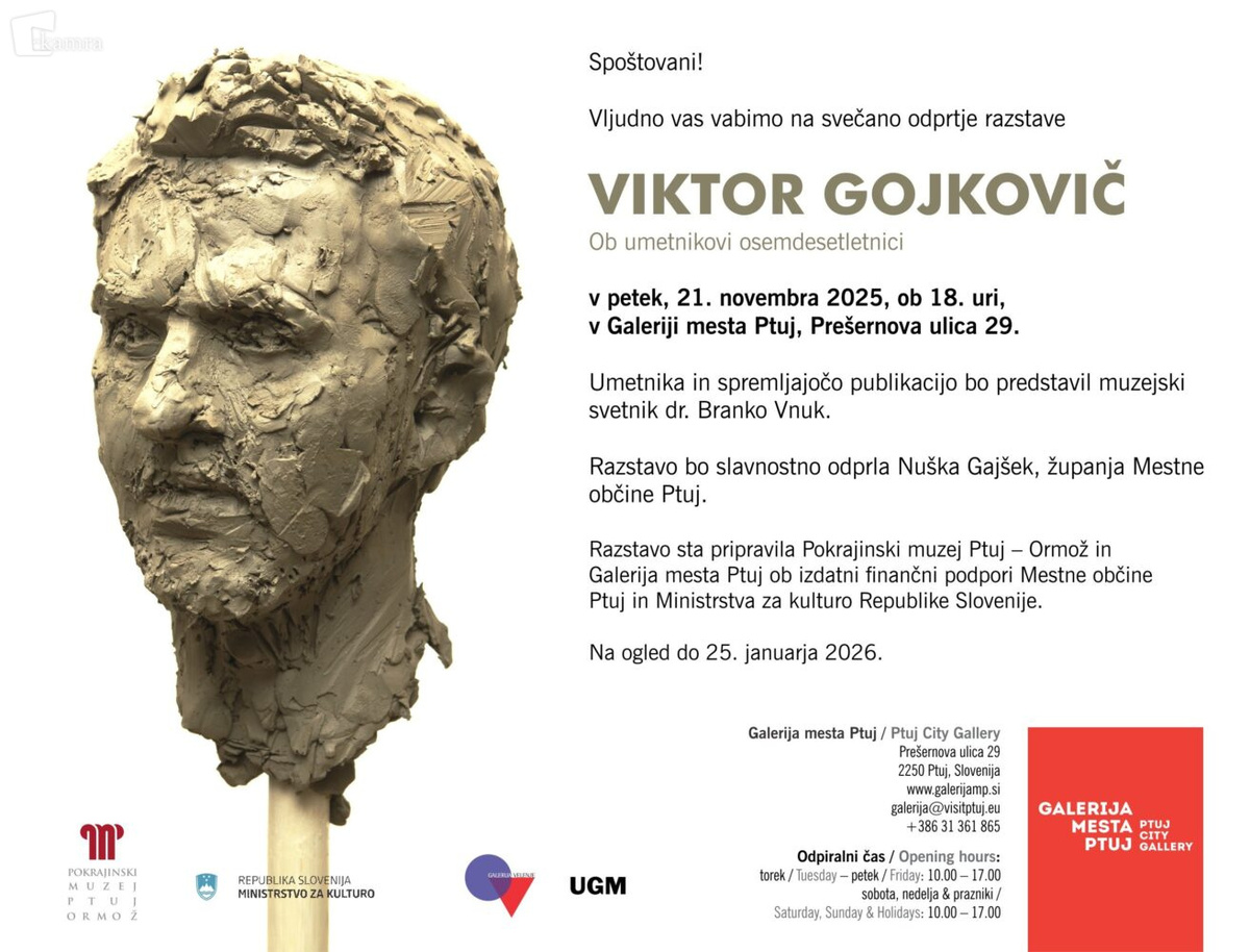 Pokrajinski muzej Ptuj – Ormož in Galerija mesta Ptuj vljudno vabita na otvoritev razstave Viktor Gojkovič: ob umetnikovi osemdesetletnici, ki bo v petek, 21. novembra 2025, ob 18. uri v Galeriji mesta Ptuj.