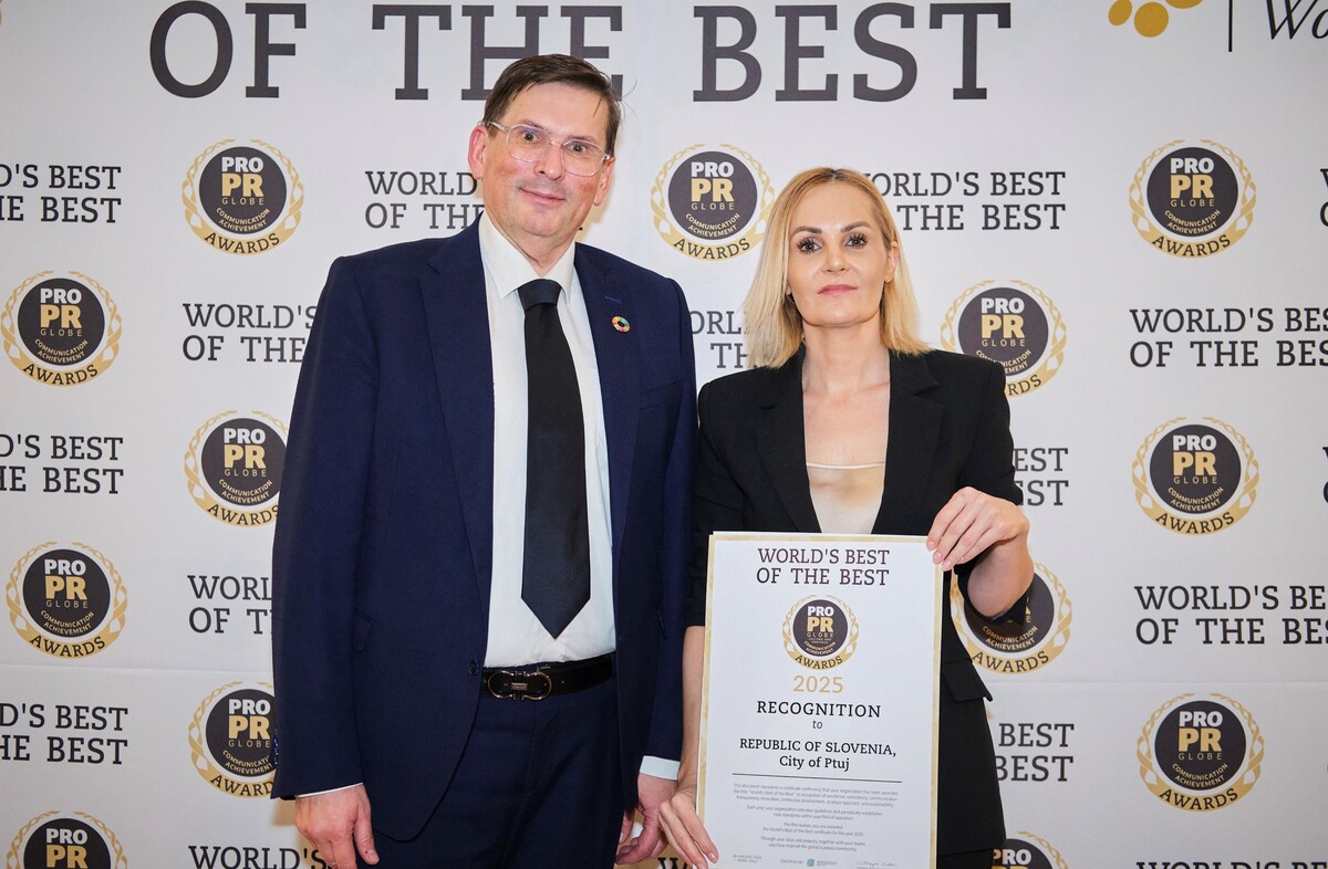 Ptuj, 29. januar 2026 – S ponosom sporočamo, da je Mestna občina Ptuj v Rimu prejela prestižno mednarodno priznanje PRO PR Globe Communication Achievement Award – World's Best of the Best na področju kulture in dediščine, s čimer se je Ptuj uvrstil med najuspešnejše komunikacijske projekte na svetu.