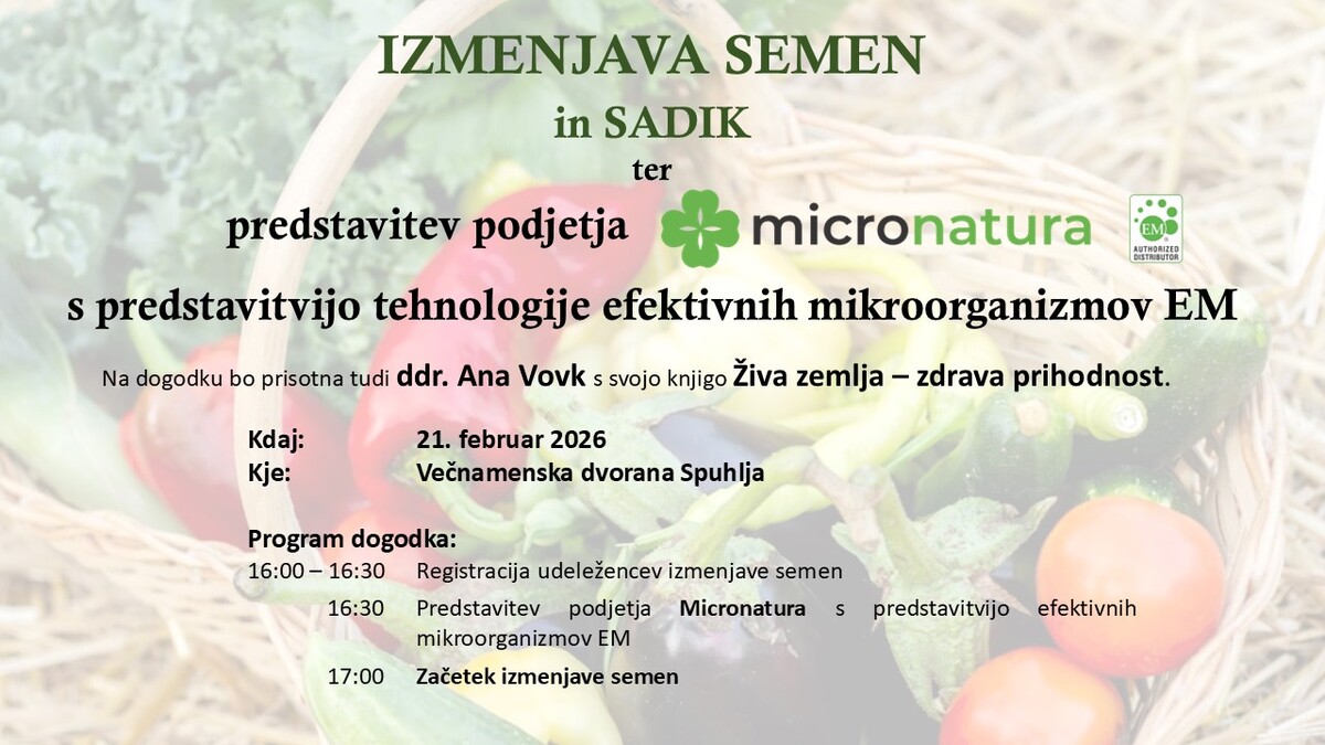 16:30 Predstavitev podjetja Micronatura s predstavitvijo tehnologije efektivnih mikroorganizmov EM
