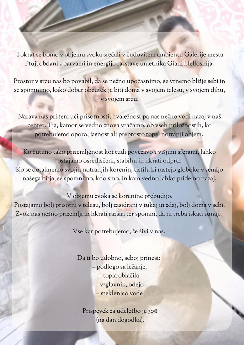 V objemu čudovite razstave umetnika Gani Llalloshi bomo skozi zvok ustvarili varen prostor za prepustitev, regeneracijo in notranjo poravnavo.