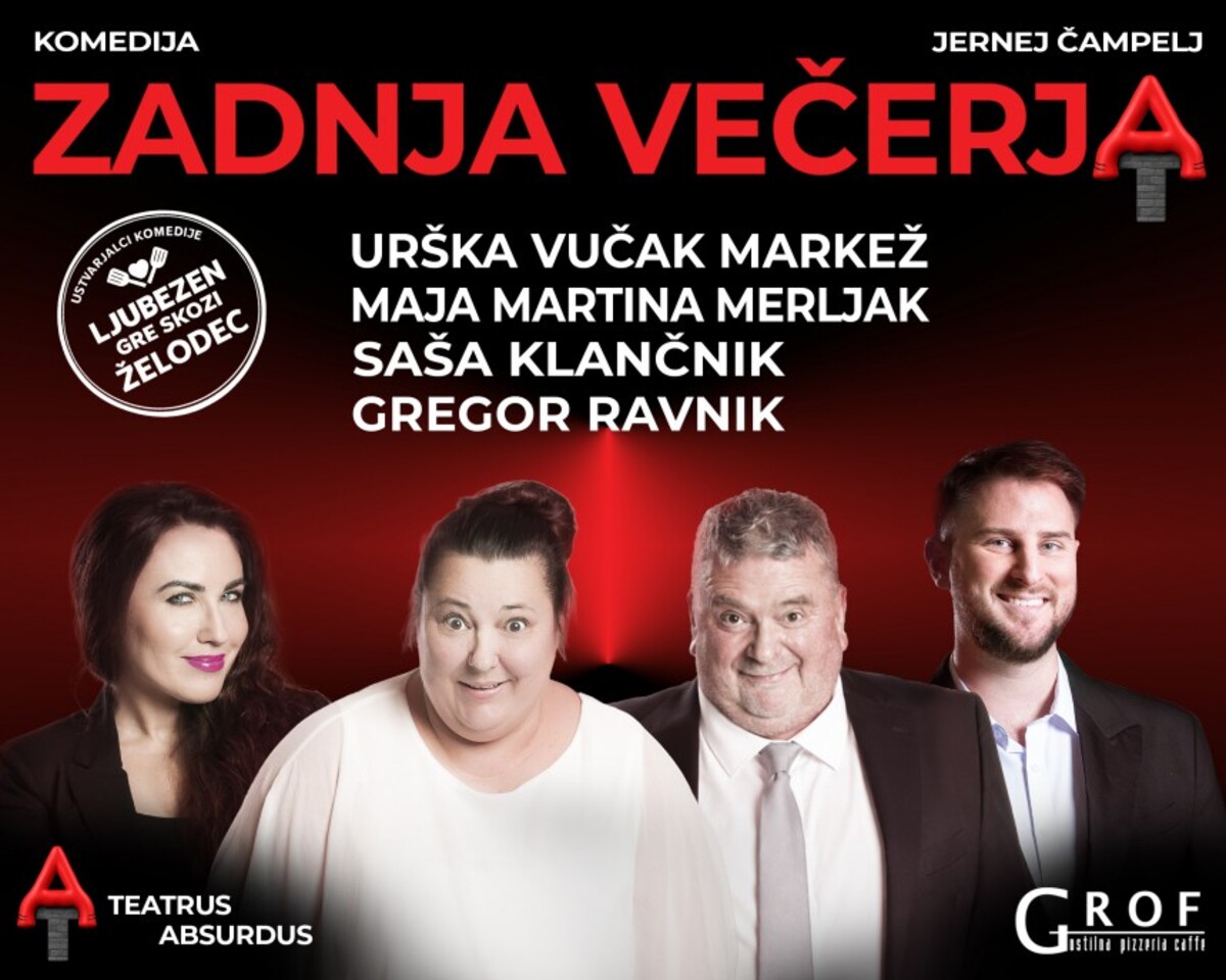 Zadnja večerja je predstava o dveh čisto običajnih ljudeh, ki se v enem samem popoldnevu znajdeta ujeta v vrtincu nesporazumov, naključij in “dobronamernih” ljudi okoli sebe. Tako, da se človek resnično vpraša: