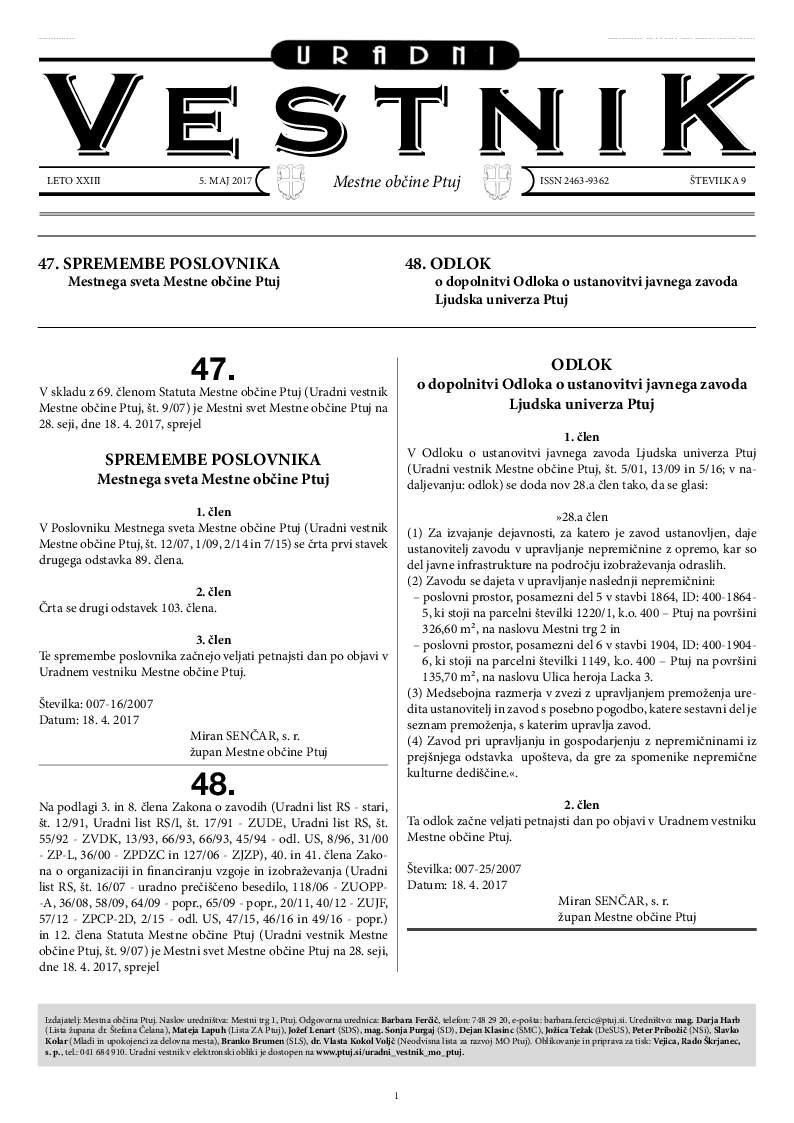 Uradni vestnik Mestne občine Ptuj, št. 9/2017