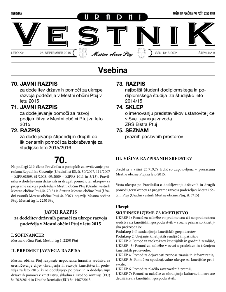 Uradni vestnik Mestne občine Ptuj, št. 8/2015