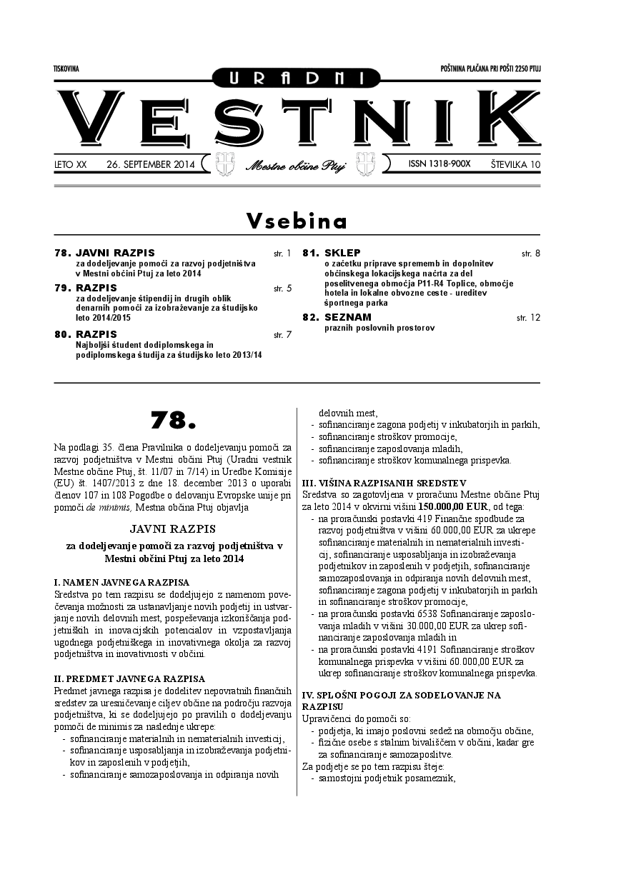 Uradni vestnik Mestne občine Ptuj, št. 10/2014