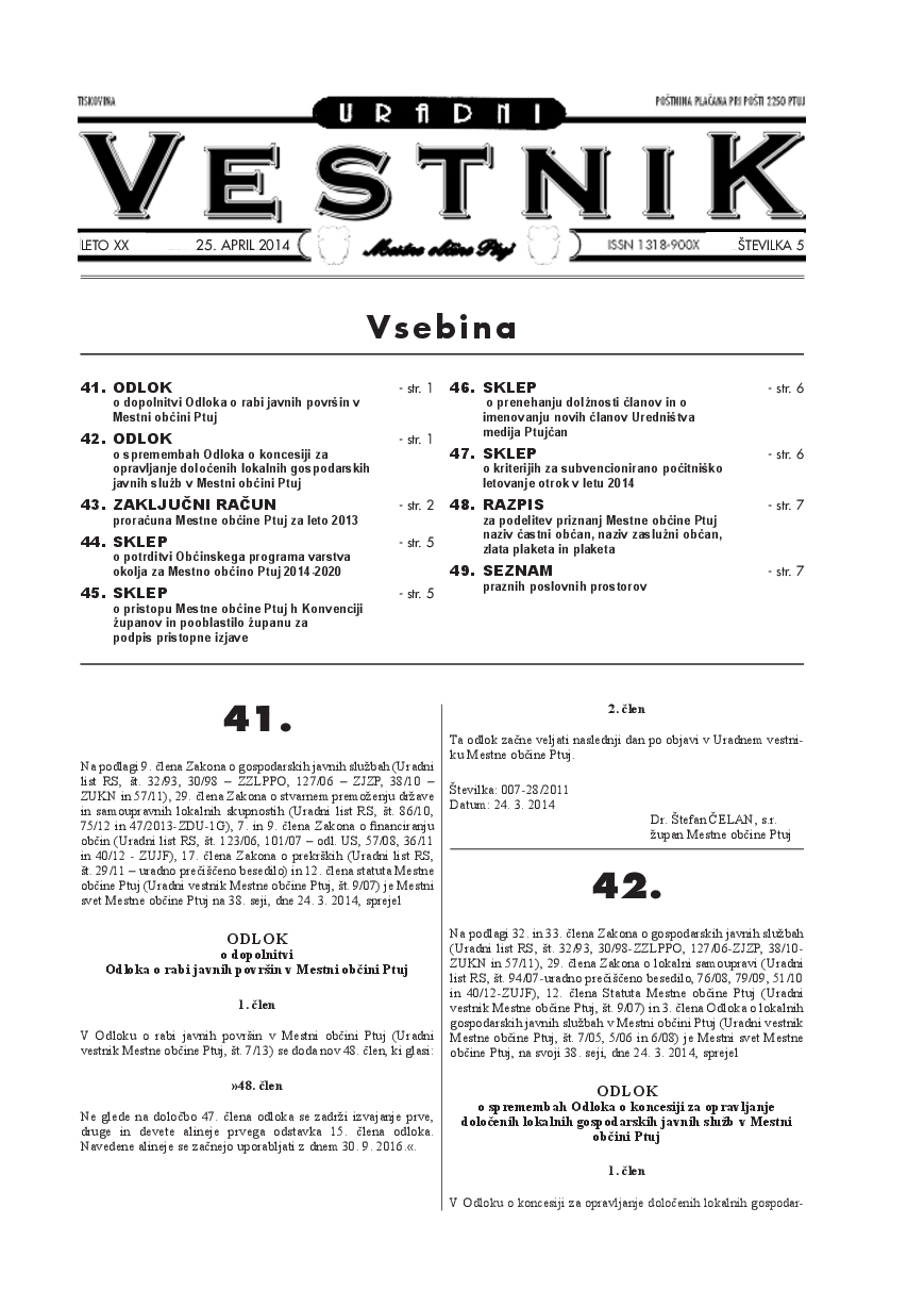 Uradni vestnik Mestne občine Ptuj, št. 5/2014