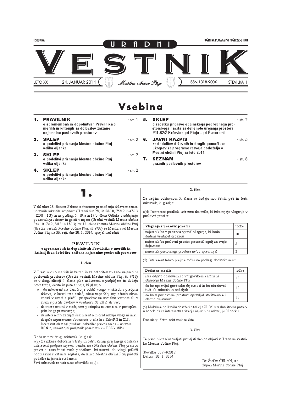 Uradni vestnik Mestne občine Ptuj, št. 1/2014