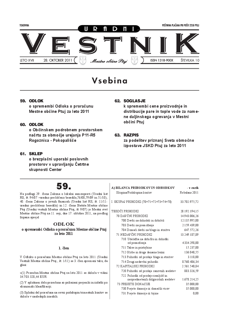 Uradni vestnik Mestne občine Ptuj, št. 10/2011