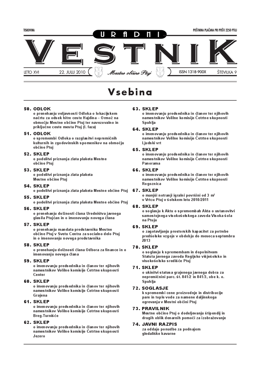 Uradni vestnik Mestne občine Ptuj, št. 9/2010