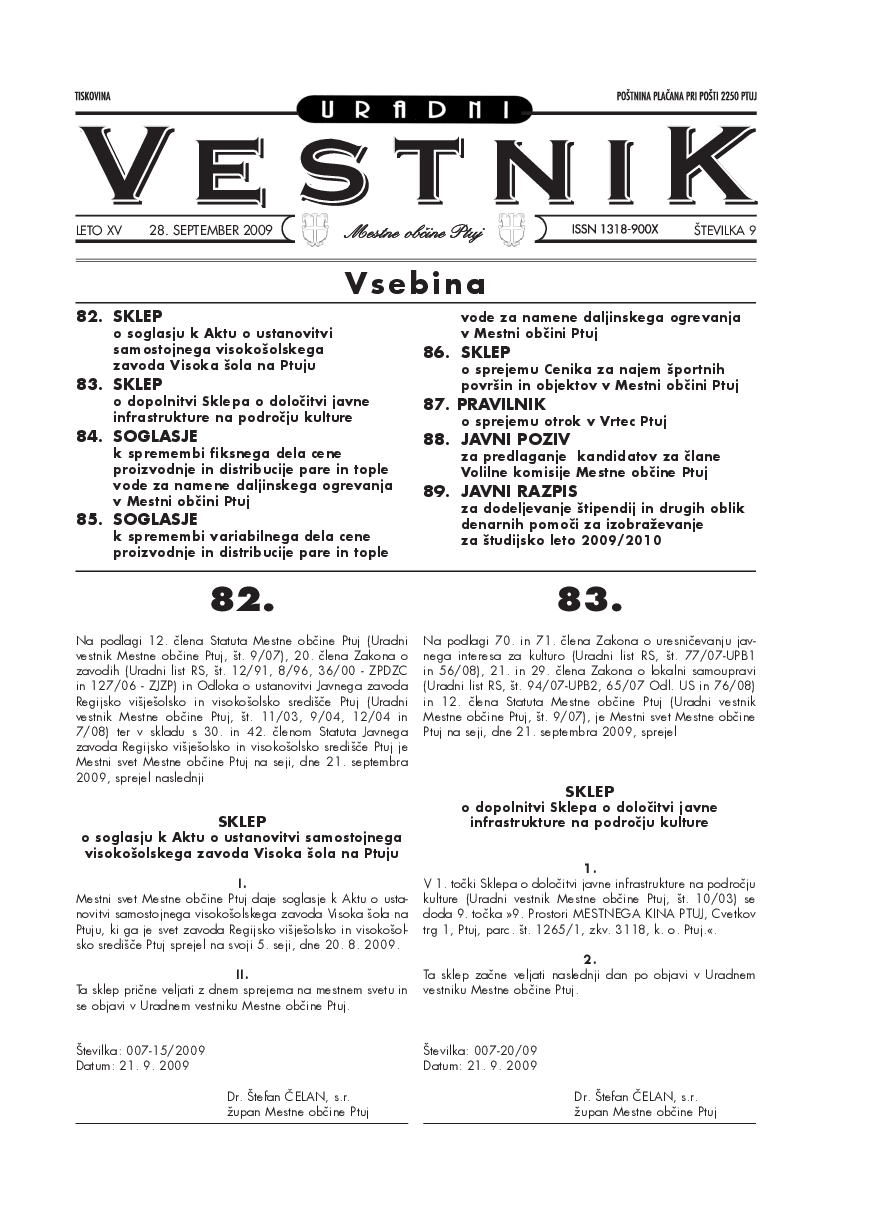 Uradni vestnik Mestne občine Ptuj, št. 9/2009