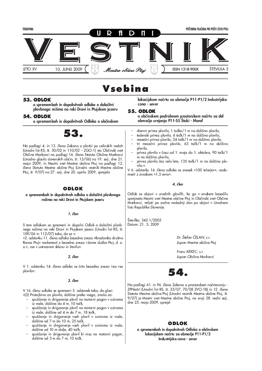 Uradni vestnik Mestne občine Ptuj, št. 5/2009 (10. junij 2009) in 6/2029 (24. junij 2009)