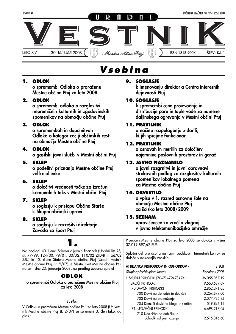 Uradni vestnik Mestne občine Ptuj, št. 1/2008