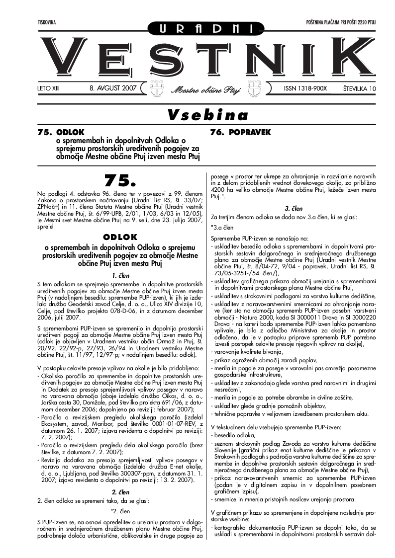 Uradni vestnik Mestne občine Ptuj, št. 10/2007