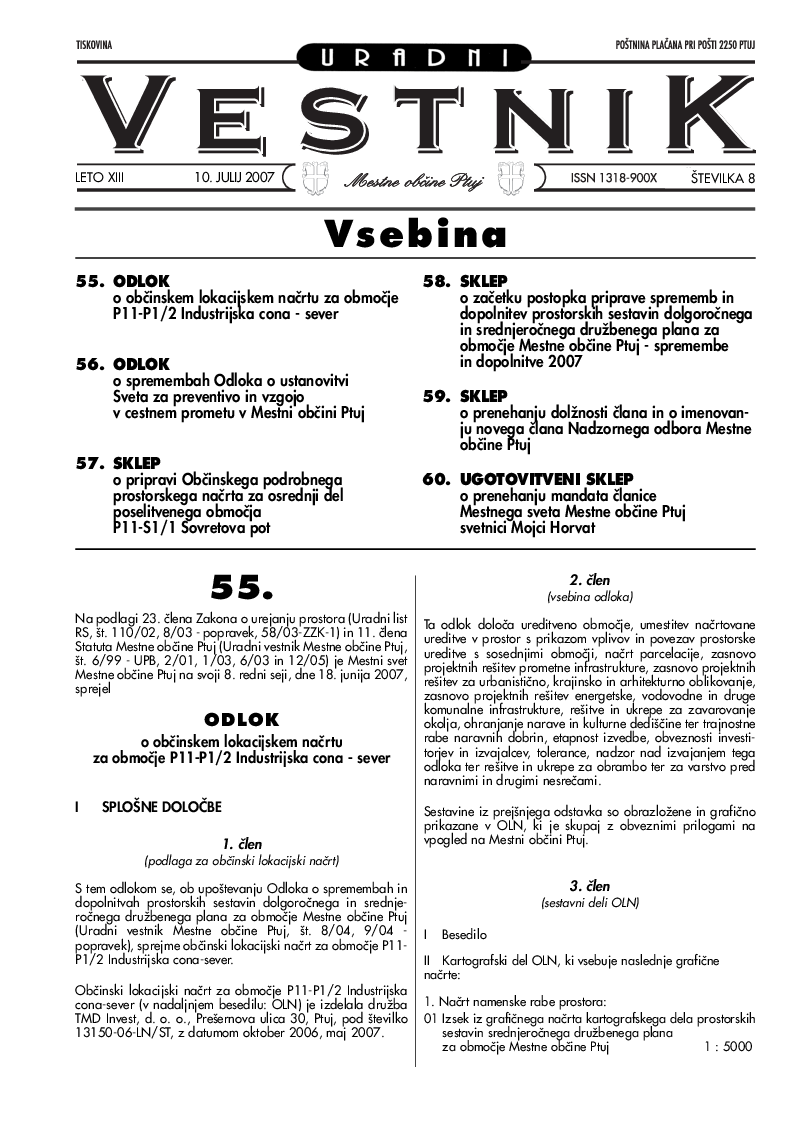 Odlok o občinskem lokacijskem načrtu za območje P11-P1/2 Industrijska cona - sever (Uradni vestnik Mestne občine Ptuj, št. 8/2007)