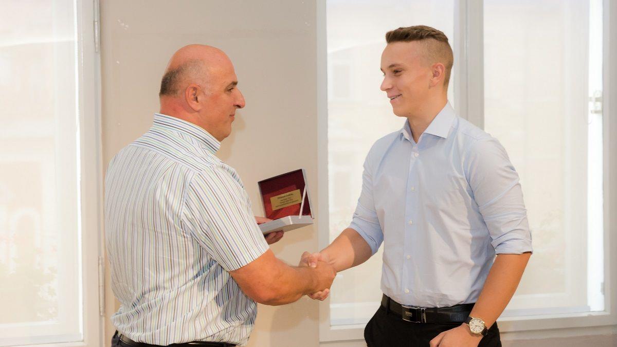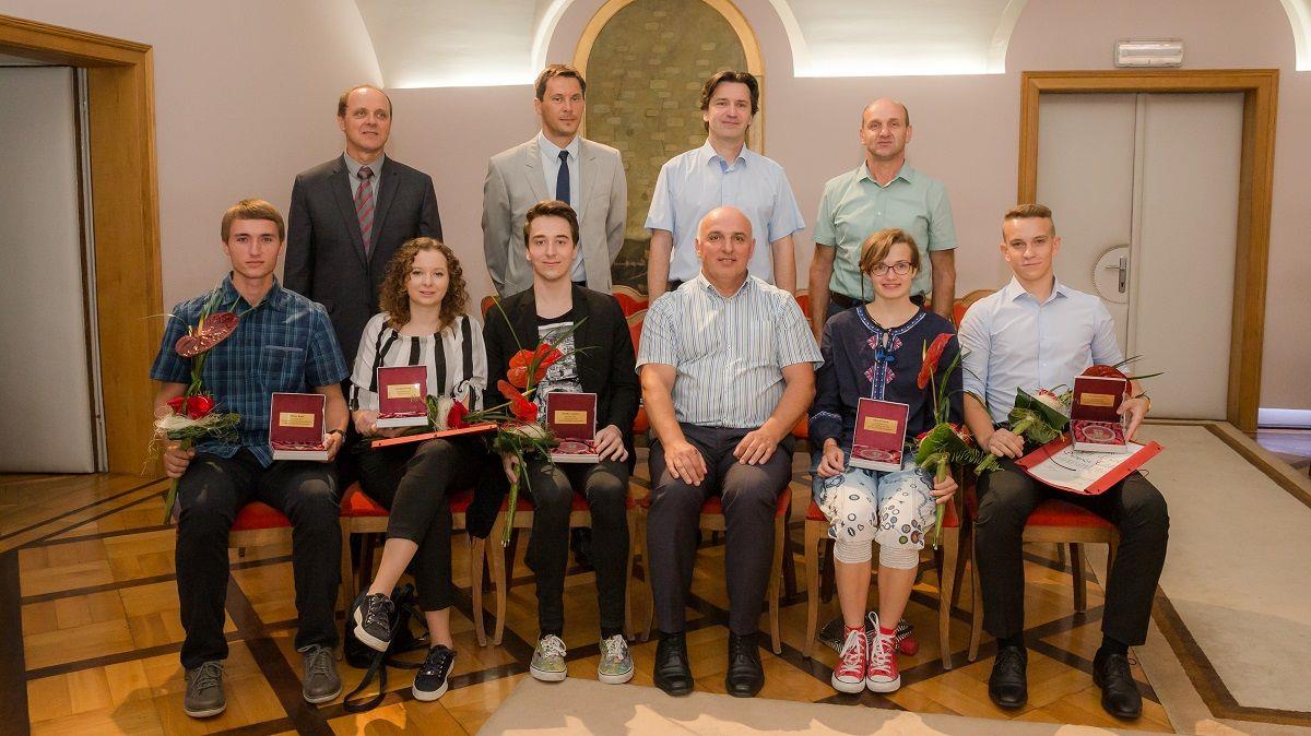 Župan MO Ptuj Miran Senčar je danes sprejel najboljše dijake srednjih šol Mestne občine Ptuj v šolskem letu 2016/17. Primož Golob (smer avtokaroserist), Patrik Lampret (strojni tehnik), oba iz Strojne šole ŠC Ptuj, Matic Rašl iz Elektro in računalniške šole, Živa Bombek (okoljevarstveni tehnik) iz Biotehniške šole ter Lucija Sevšek iz Gimnazije Ptuj so postali naj dijaki srednješolskega in poklicnega izobraževanja v šolskem letu 2016/17. Prejeli so spominsko priznanje medaljo z grbom Mestne občine Ptuj na steklu.
