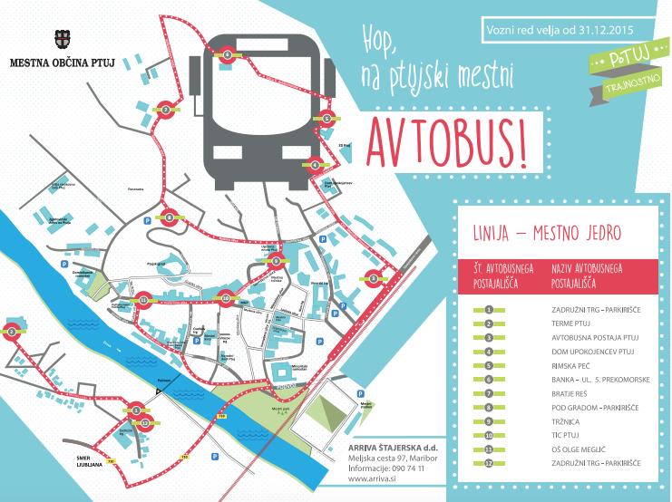 Z mestnim avtobusom želimo vsem občanom – mladim in starejšim ter obiskovalcem mesta omogočiti lažjo dostopnost želenih lokacij, kot so mestno središče, tržnica, knjižnica, terme. Tako bomo povezali tiste lokacije, ki jih medkrajevni linijski promet ne doseže. S polurnim intervalom bo povezano parkirišče na Zadružnem trgu in Terme Ptuj na levem bregu Drave ter stanovanjski del mesta s starim mestnim jedrom.