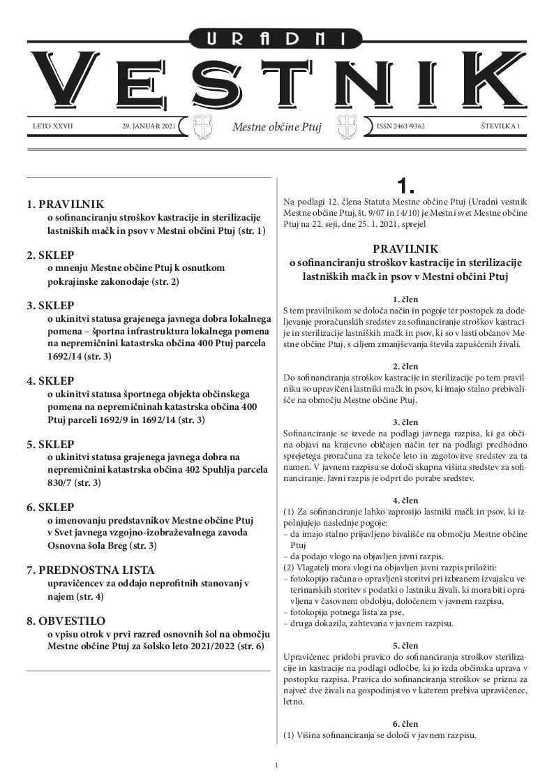Uradni vestnik Mestne občine Ptuj, št. 1/2021