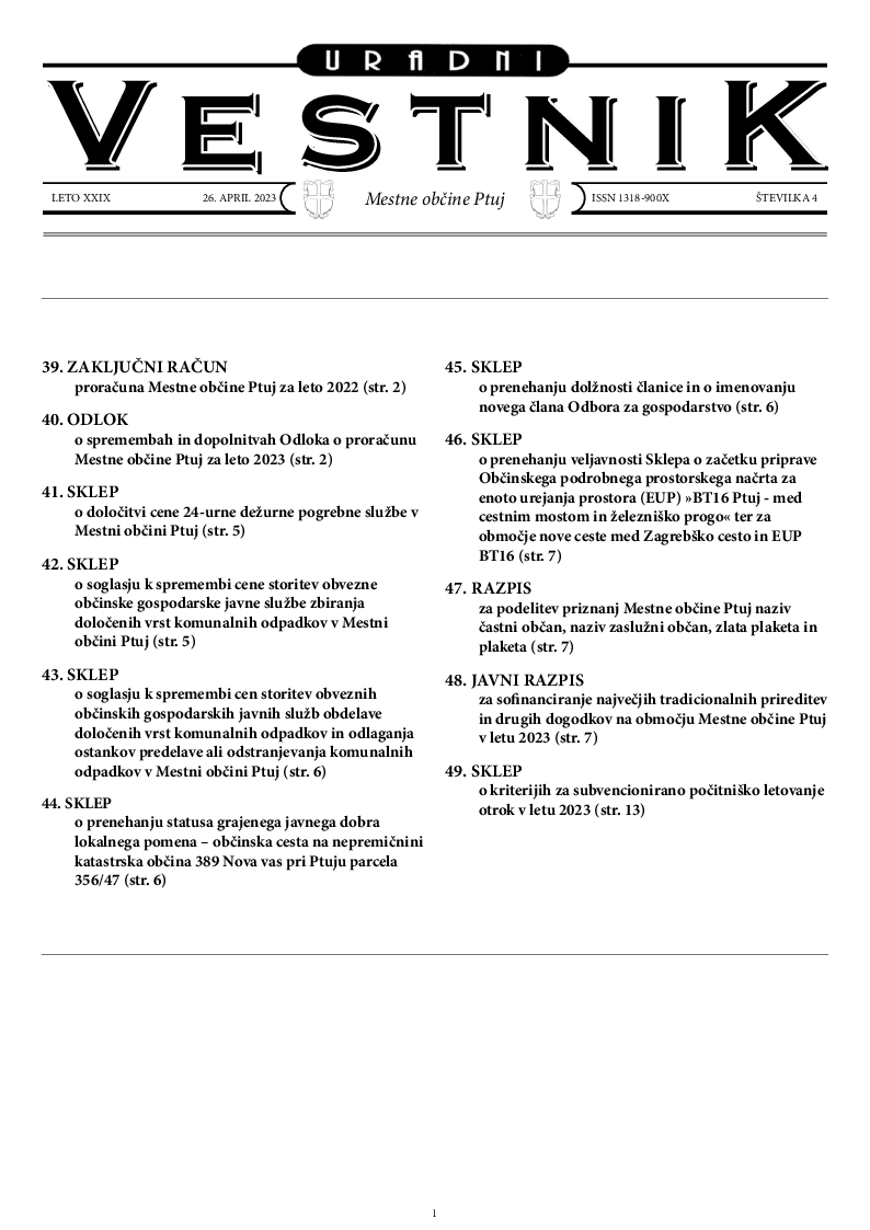 URADNI VESTNIK MESTNE OBČINE PTUJ, ŠT. 4/2023