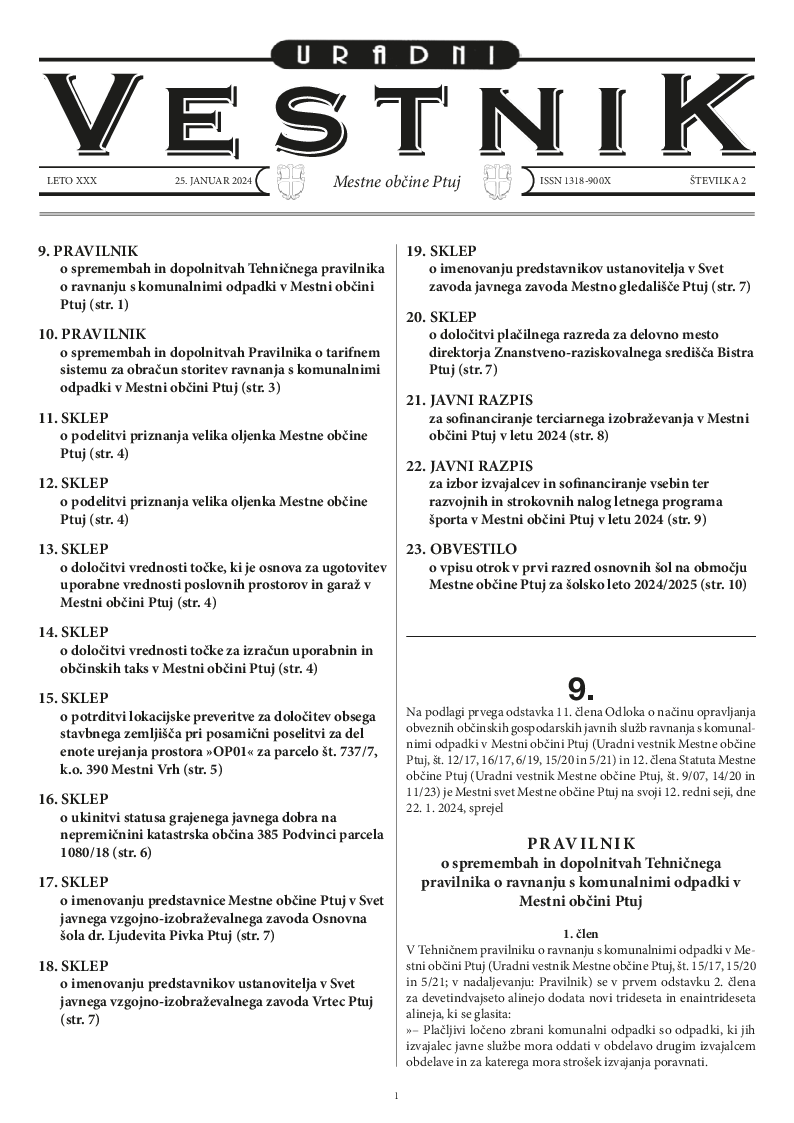 URADNI VESTNIK MESTNE OBČINE PTUJ, ŠT. 2/2024