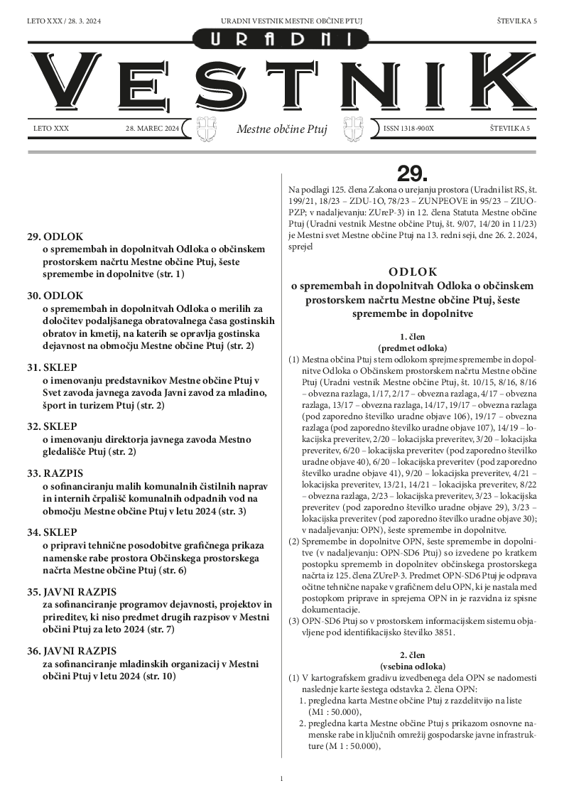 URADNI VESTNIK MESTNE OBČINE PTUJ, ŠT. 5/2024