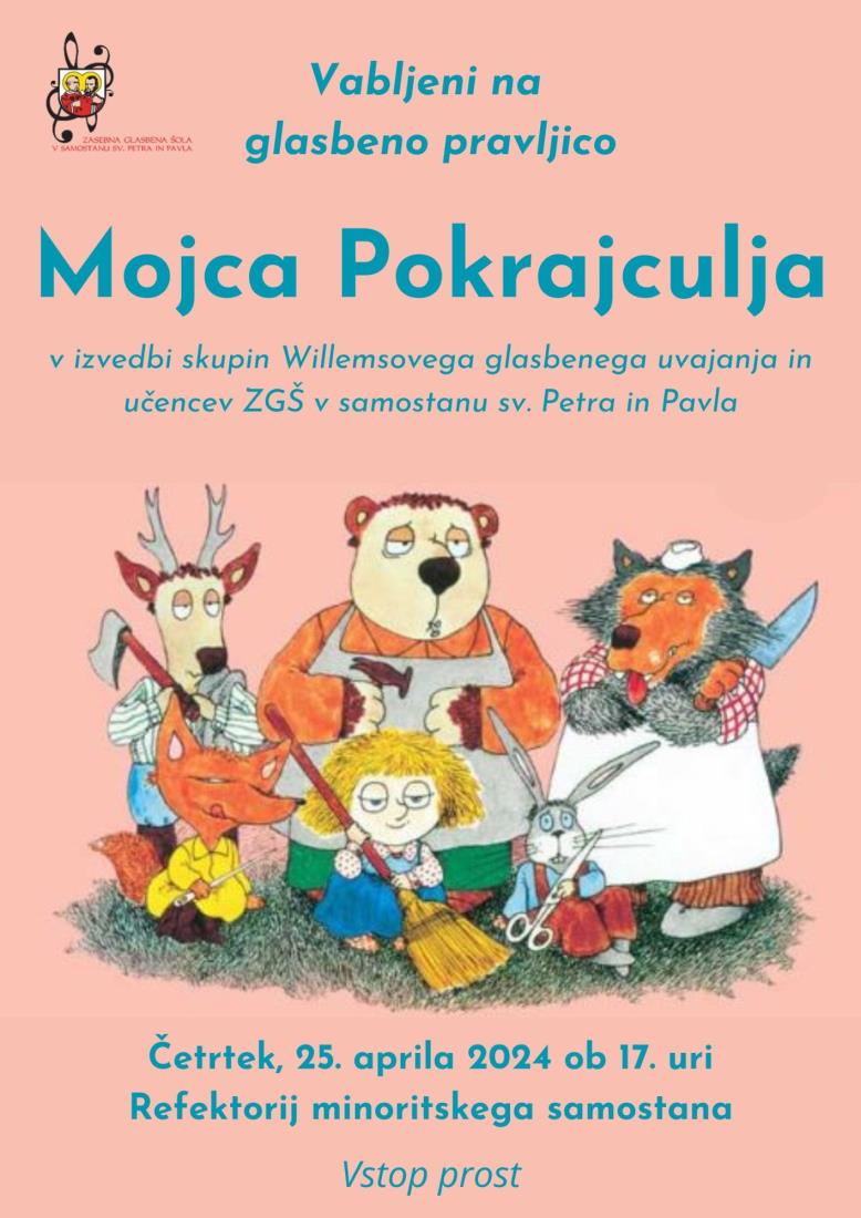 Glasbena pravljica Mojca Pokrajculja v izvedbi skupin Willemsovega glasbenega uvajanja in učencev ZGŠ v samostanu sv. Petra in Pavla Ptuj.