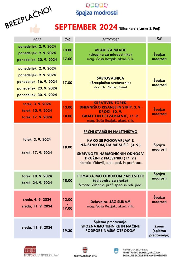 September je prišel in z njim novi dogodki in nove brezplačne aktivnosti. Radi bi vas še enkrat povabili na naše brezplačne dogodke.