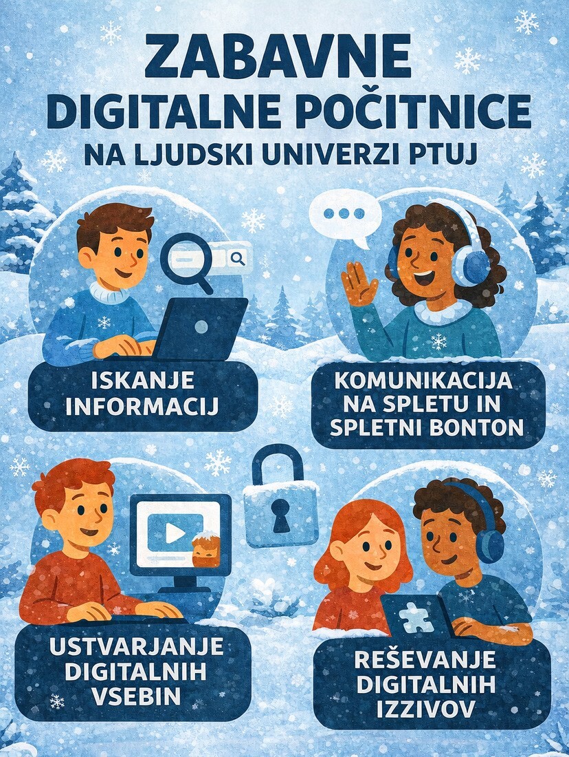 Zimske počitnice so lahko odlična priložnost za ustvarjalno raziskovanje digitalnega sveta! Na Ljudski univerzi Ptuj pripravljamo brezplačne digitalne delavnice, kjer bodo otroci na zabaven in varen način krepili svoje računalniške spretnosti ter razvijali kritično razmišljanje.
