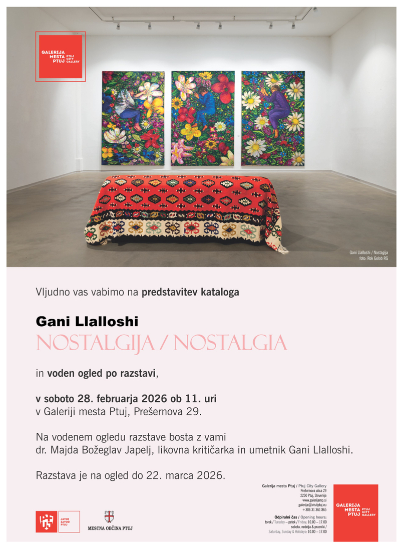 Vljudno vas vabimo na predstavitev kataloga Gani Llalloshi NOSTALGIJA/ NOSTALGIA in voden ogled po razstavi,