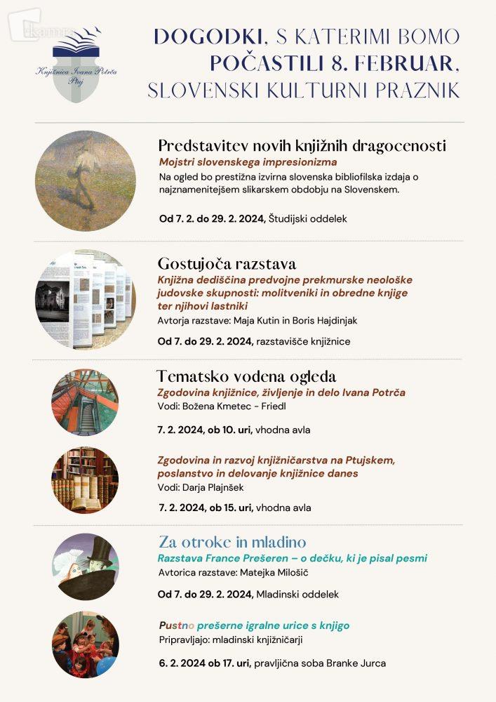 Knjižnica Ivana Potrča Ptuj vabi na dogodke ob slovenskem kulturnem prazniku: